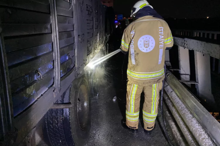 Bursa'da yolunda faciadan dönüldü! Deri yüklü t...