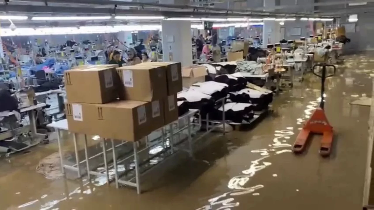Şanlıurfa'da sağanak nedeniyle tekstil fabrikasını su...