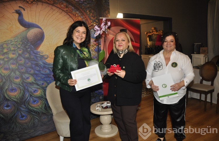 Tür Anneler Derneği Bursa Şubesi Başkanı Yasemin Mutlu, verdiği değerli bilgilerden dolayı Jinokolog Dr. Aylin Karahasan'a teşekkür belgesi taktim etti.