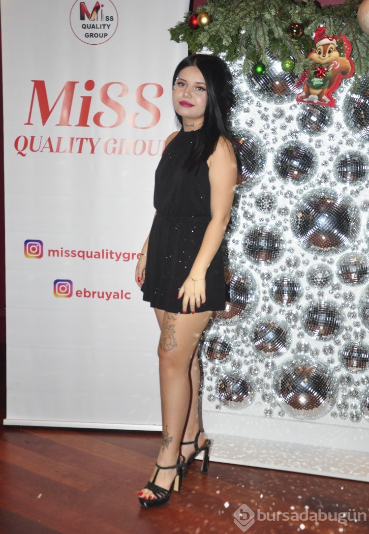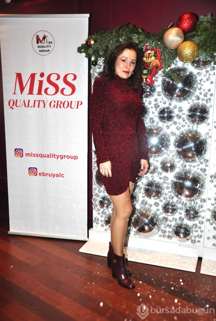 Bursa'nın başarılı iş kadınlarından oluşan Miss Quality Group Podyum Sahne'de düzenlediği "Yeni Yıla Merhaba" partisi çok sayıda iş kadınını bir araya getirdi. Düzenlenen "Yeni Yıla Merhaba" partisine tüm Miss Quality üyelerinin yanı sıra çok sayıda davetli katıldı. Bursalı Başarılı iş kadını Ebru Yalçın'ın ev sahipliğinde düzenlenen etkinliğe gelen hanımlar gece geç saatlere kadar renkli görüntüler oluşturdular. Gece boyunca Bursa'nın sevilen Dj'i Hüseyin Çelik'in çaldığı bir birinden güzel günümüzün müzikleriyle coşan kadınlar pisti bir an olsun boş bırakmayarak gecenin tadını göbek atarak doyasıya çıkararak Yeni yılı erken kutlamış oldular. Gecenin finalinde ise özel olarak hazırlanan Yeni Yıl pastasını Miss Quality Group kurucusu Ebru Yalçın Gürük alkış arasında kesti.