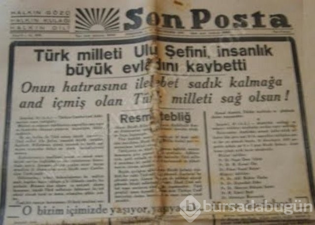 Son Posta büyük acıyı, "Türk milleti Ulu Şefini, insanlık büyük evladını kaybetti" sözleriyle duyurdu. Haberin alt başlığı olarak ise "Onun hatırasına ilelebet sadık kalmaya and içmiş olan Türk milleti sağ olsun" cümlesi yer aldı.
