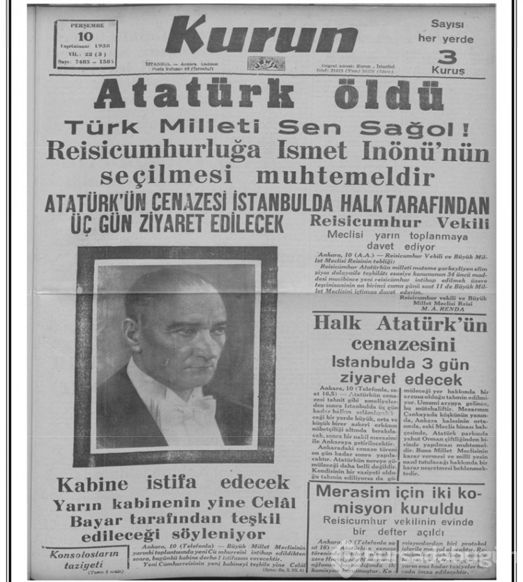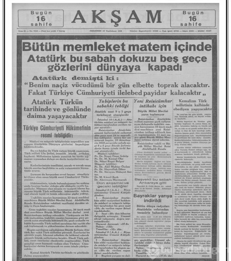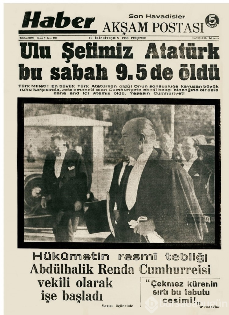 10 Kasım 1938 tarihli Haber gazetesi, Atatürk'ün ölüm haberini aynı gün ikinci baskısını yaparak verdi. Gazete tam sayfa Mustafa Kemal fotoğrafının üzerine "Ulu Şefimiz Atatürk bu sabah 9.5 de öldü" yazdı.