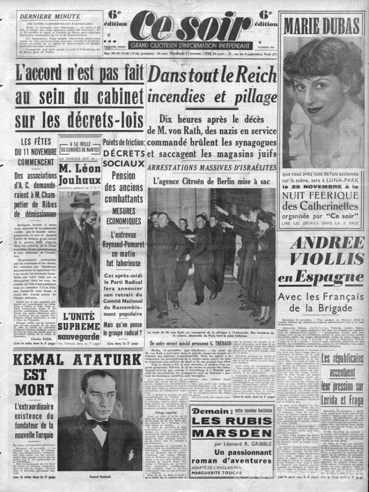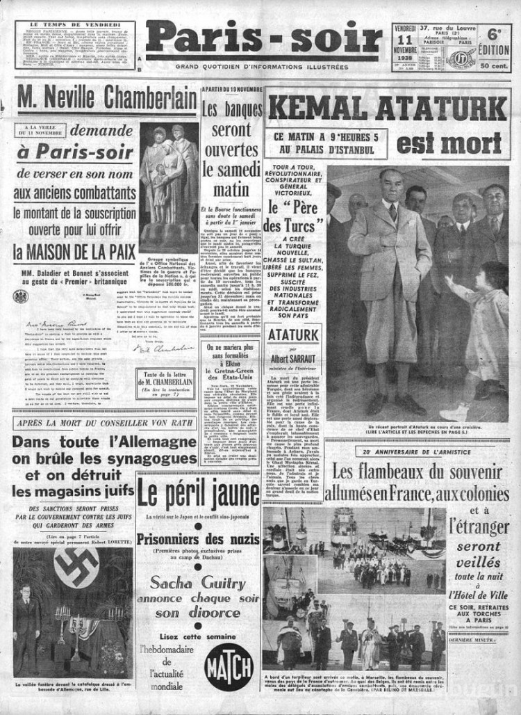 Fransız Gazetesi Ce Soir, Atatürk'ün ölümünü "Kemal Atatürk Öldü" başlığıyla verdi.