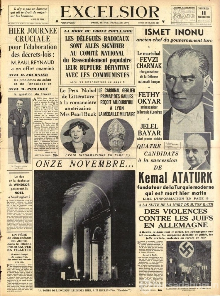 Paris merkezli Excelsior gazetesi Büyük Önder'in vefatını, "Modern Türkiye'nin kurucusu Kemal Atatürk dün sabah vefat etti" başlıklı haber ile duyurdu.