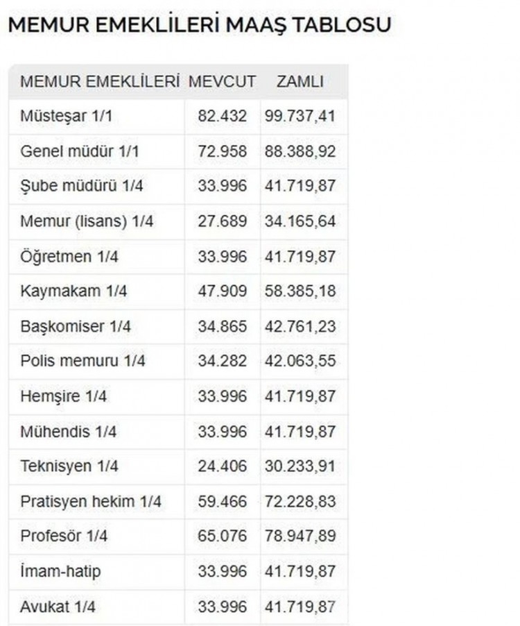MEMUR EMEKLİLERİ MAAŞ TABLOSU