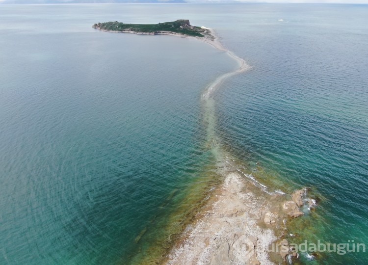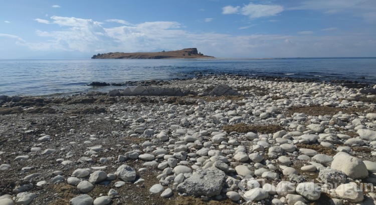 Van Gölü'nde su seviyesinin azalmasıyla Çarpanak Adası'na ulaşımı sağlayan yaklaşık 1 kilometrelik antik yolun büyük bir kısmı gün yüzüne çıktı.