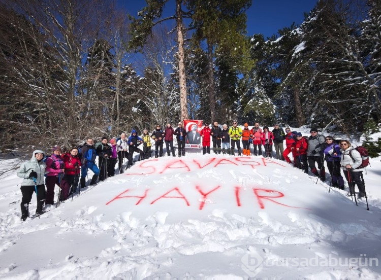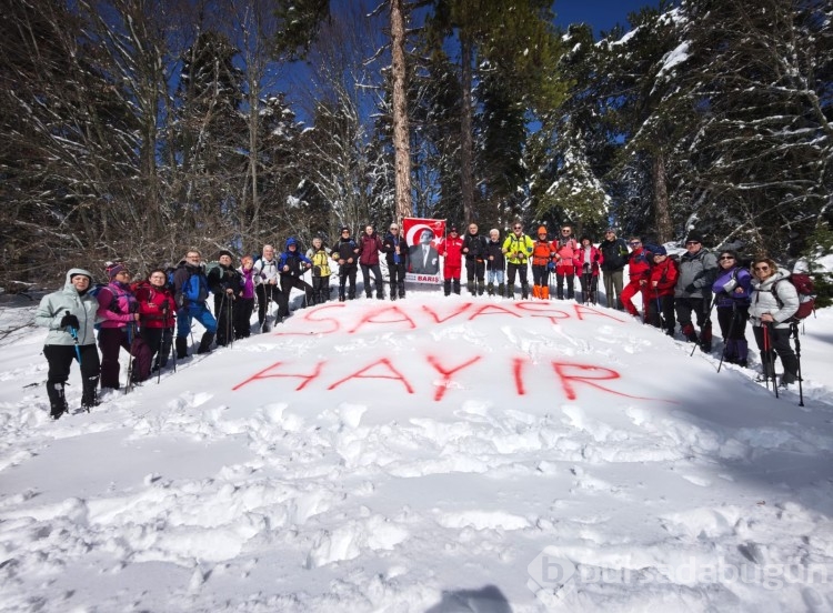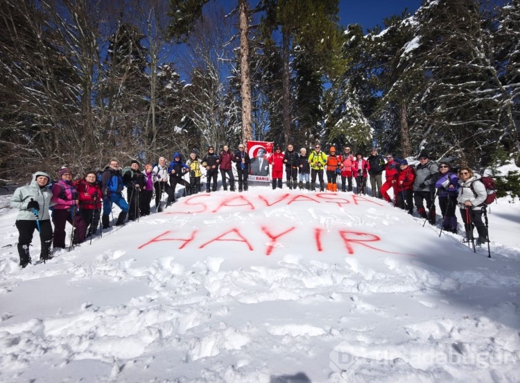 Etkinlik sırasında kulüp üyeleri ve katılımcılar, dünyada yaşanan savaş ve çatışmalara dikkat çekmek amacıyla anlamlı bir mesaj verdi. Beyaz kar örtüsü üzerine büyük harflerle "SAVAŞA HAYIR" yazan doğaseverler, hep birlikte