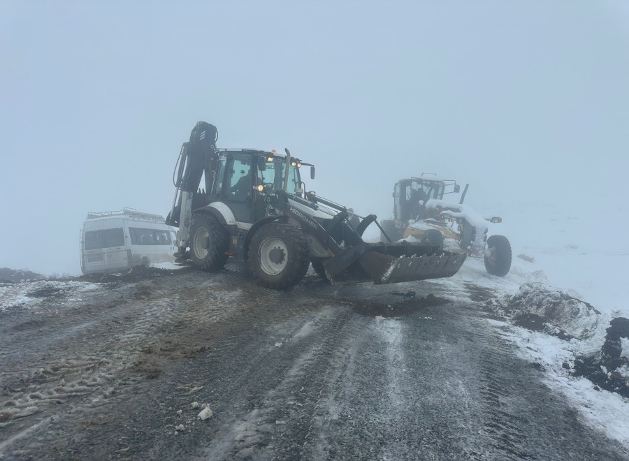 Iğdır'da yoğun kar yağışı sonrası kapanan 57 köy yolu ile toplam 315 kilometrelik hat üzerinde, Iğdır İl Özel İdaresi ekipleri çalışmalarına aralıksız devam ediyor. Ekiplerin sabah saatlerinde yürüttüğü çalışmalar sırasında, Alibeyköy'den Iğdır şehir merkezine gelmeye çalışan bir yolcu minibüsünün, yoğun sis ve kar nedeniyle şarampole devrildiği ihbarı alındı.