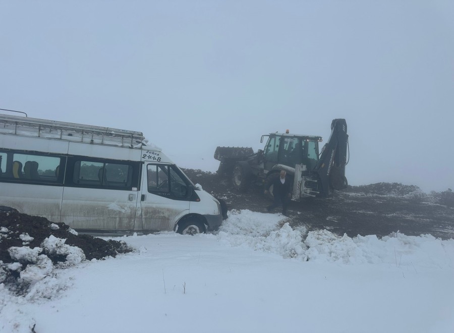 57 köy yolu ulaşıma kapandı, şarampole devrilen minibüs kurtarıldı