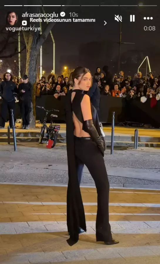 Magazin, 2026.03.08 12:25A.B.İ dizisinde Kenan İmirzalıoğlu ile başrolü paylaşan Afra Saraçoğlu, Paris Moda Haftası'na katıldı. Başarılı oyuncu siyah tarzıyla ve derin sırt dekoltesiyle adından söz ettirdi.