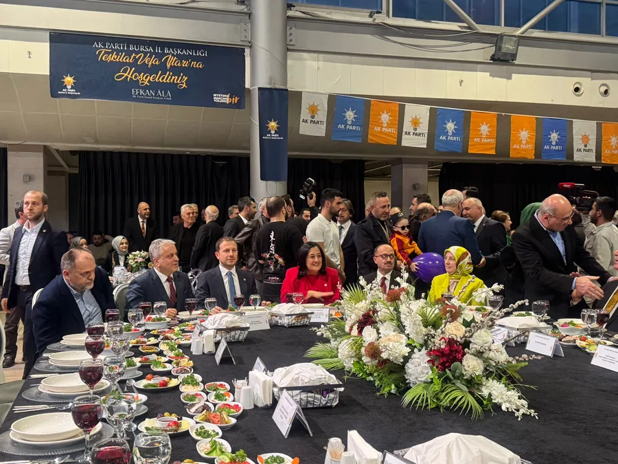 AK Parti Bursa İl Başkanlığı, Ramazan ayının üçüncü gününde, Merinos Atatürk Kültür Merkezi'nde parti mensuplarının katılımlarıyla 'Teşkilat Vefa İftarı' gerçekleştirdi. İftar programına il ve ilçe parti üyeleri, kadın ve gençlik kolları temsilcileri ile çok sayıda partili katıldı. Kur'an-ı Kerim tilavetiyle başlayan programda, Ramazan'ın dayanışma ve kardeşlik ruhuna vurgu yapıldı.