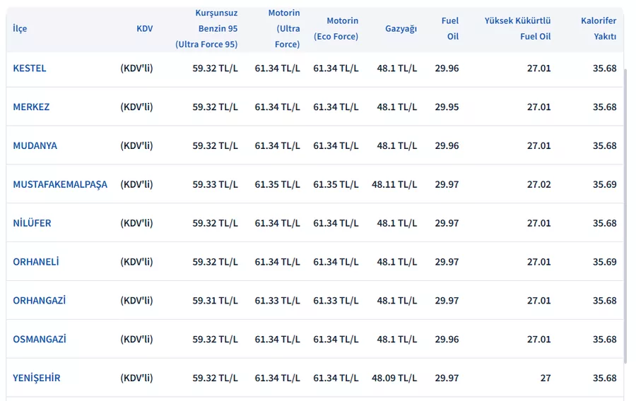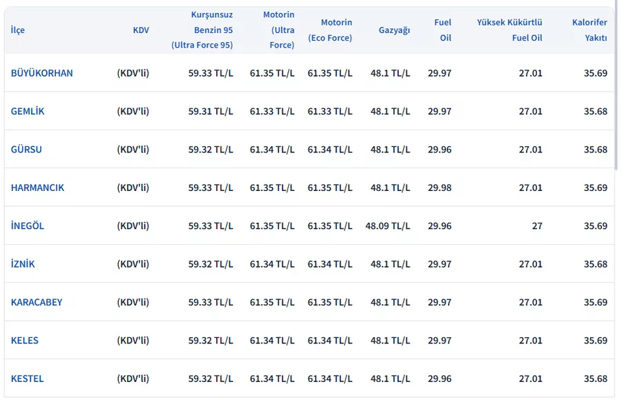 2 Mart 2026 tarihinde güncel akaryakıt fiyatları ise şu şekilde: