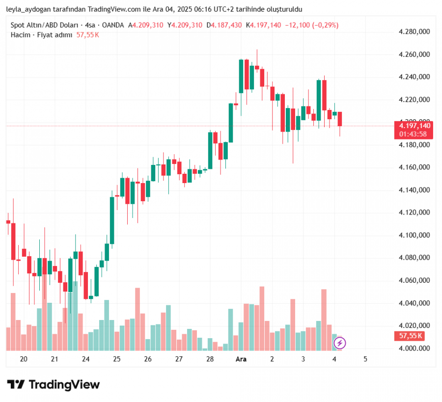 Altının onsu saat 07.15 itibarıyla 4 bin 197 dolardan işlem görüyor.