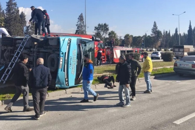 Çarpmanın etkisiyle özel halk otobüsü, kaldırıma çıkıp devrildi. O sırada panikleyen H.A.'nın kullandığı 07 BRU 567 plakalı otomobil de elektrik direğine çarptı.