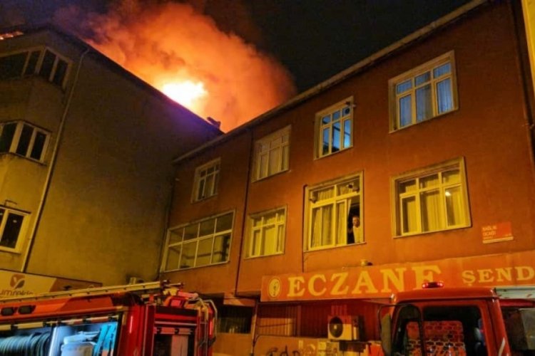 Tekstil atölyesi olarak kullanılan binanın çatısında henüz bilinmeyen sebeple yangın çıktı.