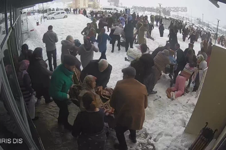 Havanın soğuk olması nedeni ile deprem sonrası battaniye almak için içeri girenlerin artçı sarsıntıya yakalandığı anlar da yine güvenlik kamerasına yansıdı.