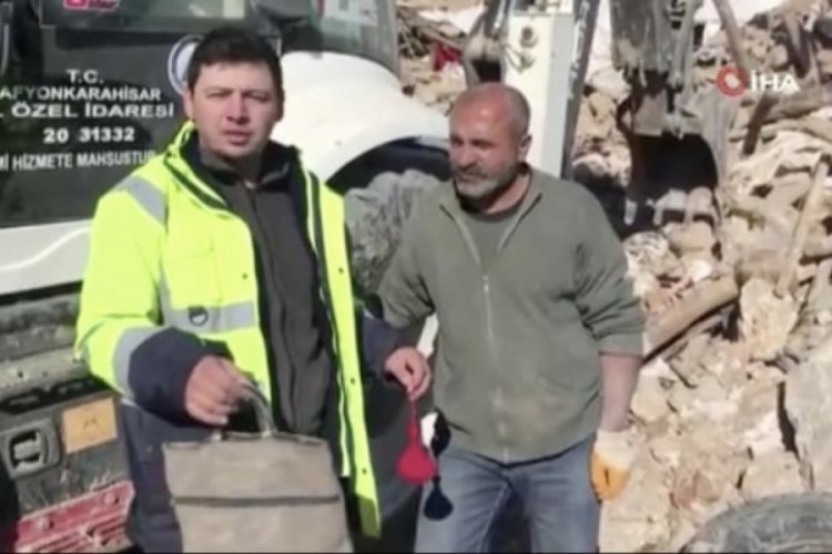 Afyonkarahisar'dan afet bölgesine giden Mustafa Akyıldız çöken ağılda içerisinde 20 adet ata altın ve 25 yarım altın ile bir miktar para olan çantayı enkazdan çıkararak sahibine teslim etti.