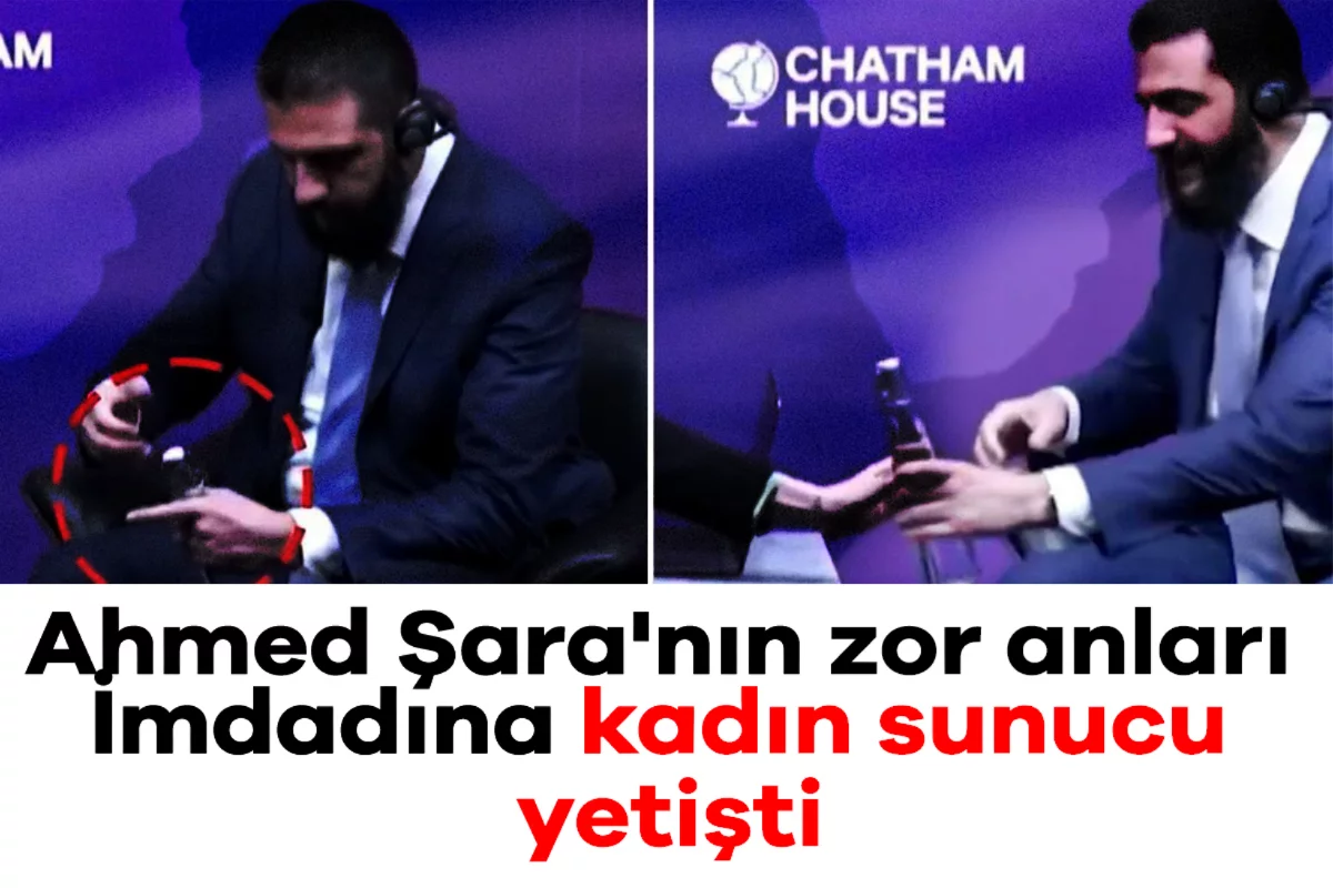 Almanya'da röportaj verdiği sırada su şişesinin kapağını açamayan Suriye Devlet Başkanı Ahmed Şara'nın imdadına sunucu yetişti.