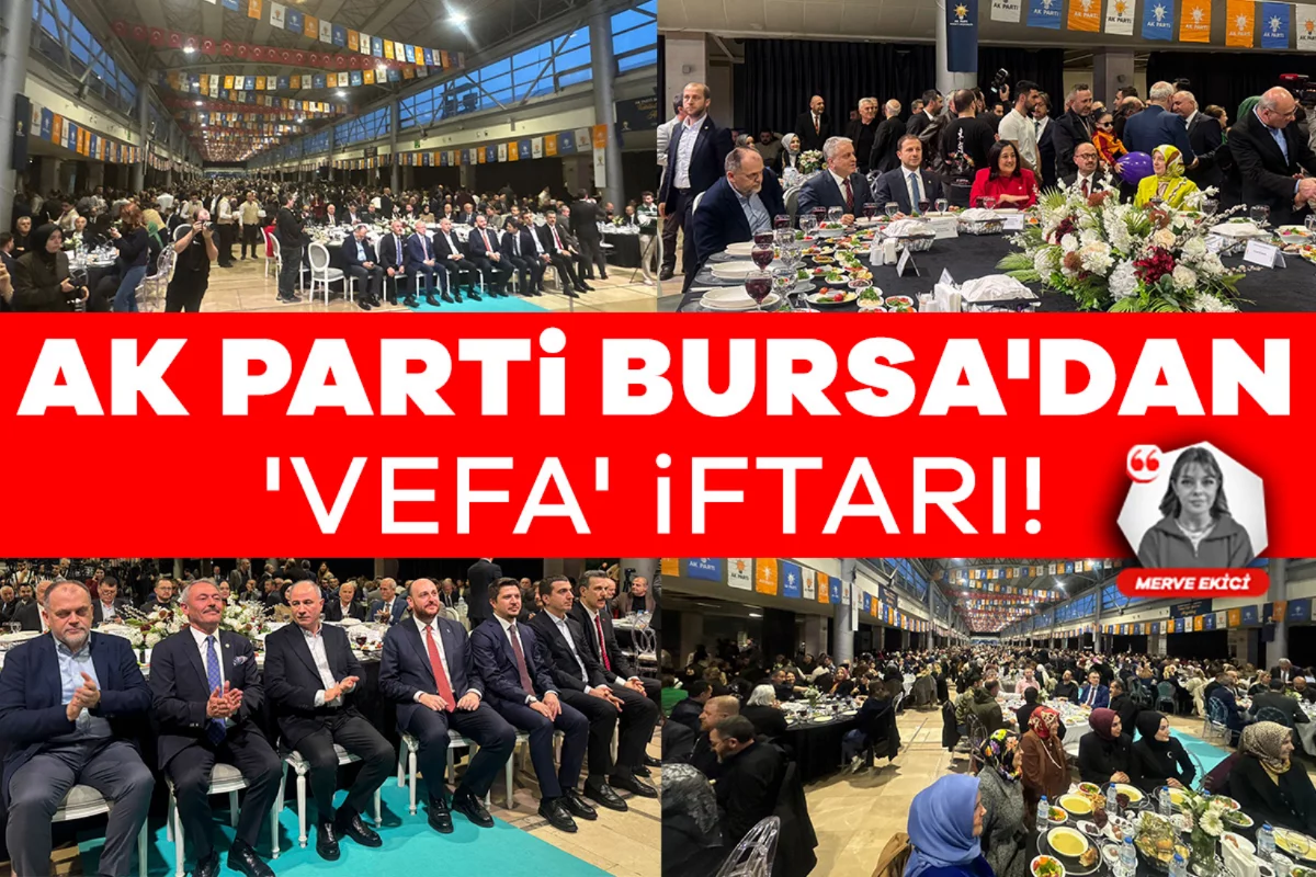 AK Parti Bursa İl Başkanlığı, Ramazan ayının üçüncü gününde, Merinos Atatürk Kültür Merkezi'nde parti mensuplarının katılımlarıyla 'Teşkilat Vefa İftarı' gerçekleştirdi. İftar programına il ve ilçe parti üyeleri, kadın ve gençlik kolları temsilcileri ile çok sayıda partili katıldı. Kur'an-ı Kerim tilavetiyle başlayan programda, Ramazan'ın dayanışma ve kardeşlik ruhuna vurgu yapıldı.