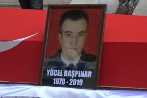 Denizli'de alkollü araç sürücüsünün kullandığı otomobille çarpışan polis aracında yaralanan ve tedavi gördüğü hastanede dün gece şehit düşen 49 yaşındaki polis memuru Yücel Başpınar için cenaze töreni düzenlendi. Törende şehidin aile üyeleri sinir krizleri geçirdi.