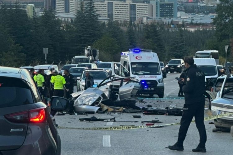 Ankara'nın Çankaya ilçesinde iki otomobilin çarpıştığı kazada, araçlardan biri ikiye ayrılırken 1 kişi hayatını kaybetti, 2 kişi yaralandı.