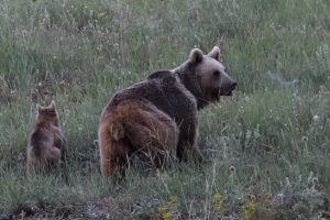 Yavru ayılarında annelerinin yanından hiç ayrılmaması dikkat çekti. Yaşamak için geniş ve rahatsız edilmeyecekleri alanlara ihtiyaç duyan boz ayılar, yavrularını asla yalnız bırakmıyor.