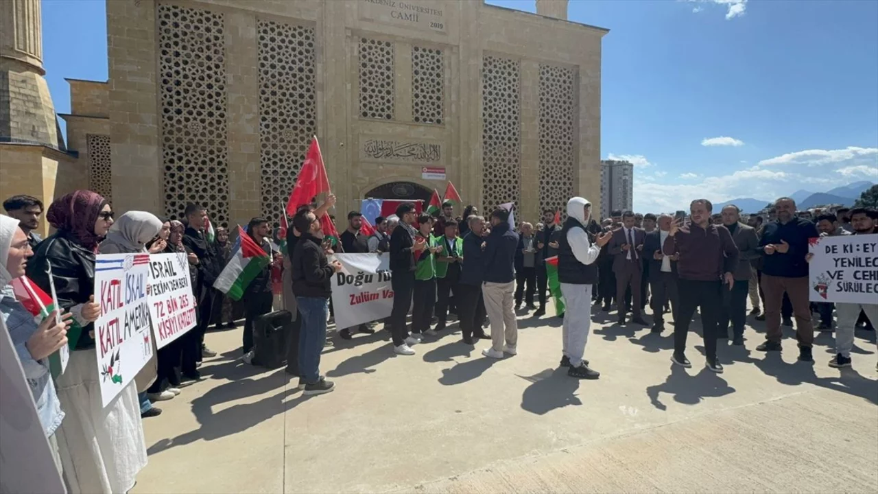Filistin'e Destek Platformu öncülüğünde Akdeniz Üniversitesi Camisi'nde cuma namazı sonrası bir araya gelen katılımcılar, tekbir getirip ABD ve İsrail karşıtı sloganlar attı.