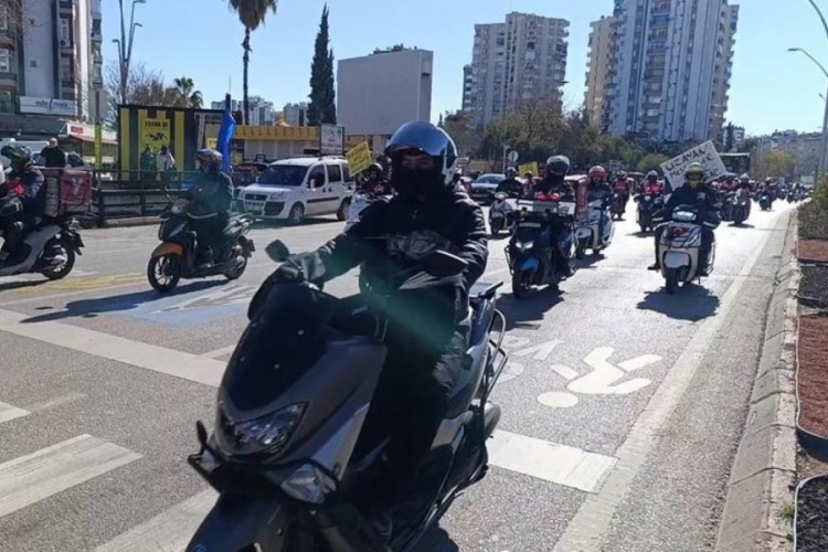 Adana'da bir yemek sipariş firmasıyla çalışan motosikletli kuryeler, yetersiz ücret zamlarına karşı kontak kapatarak eylem yaptı. Açıklama yapan kuryeler daha sonra şehir turu attı.