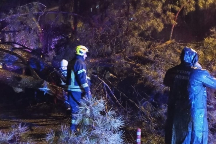Aydın'ın Efeler ilçesinde aşırı yağış nedeniyle bir ağaç, seyir halindeki otomobilin üzerine devrildi. Ağacın üzerine devrildiği otomobilde sıkışarak yaralanan karı-koca, ekipler tarafından çıkarılarak, hastaneye kaldırıldı.