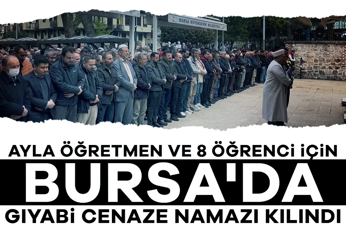 Bursa'da, Şanlıurfa ve Kahramanmaraş'ta okullarda gerçekleştirilen silahlı saldırılarda hayatını kaybeden öğretmen Ayla Kara ile 8 öğrenci için gıyabi cenaze namazı kılındı.