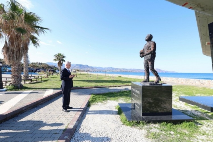 Ticaret Bakanı Ömer Bolat, Lefkoşa temasları kapsamında şehit Yüzbaşı Cengiz Topel'in anıtını ziyaret etti.