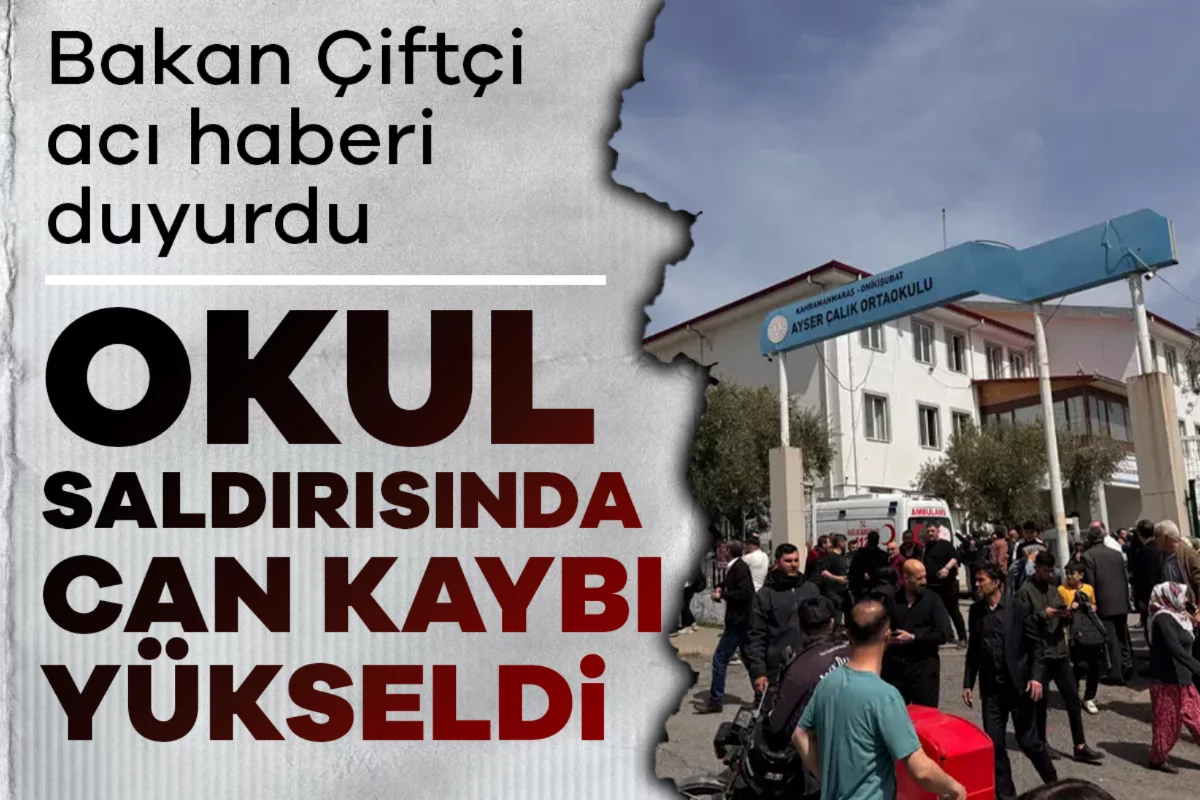 İçişleri Bakanı Mustafa Çiftçi, Kahramanmaraş'taki okul saldırısında can kaybının 9'a yükseldiğini açıkladı. Bakan Çiftçi, hayatını kaybedenlerin 8'inin öğrenci, 1'inin öğretmen olduğunu duyurdu. Çiftçi, saldırının ardından Kahramanmaraş'ta eğitime 2 gün ara verildiğini de belirtti.