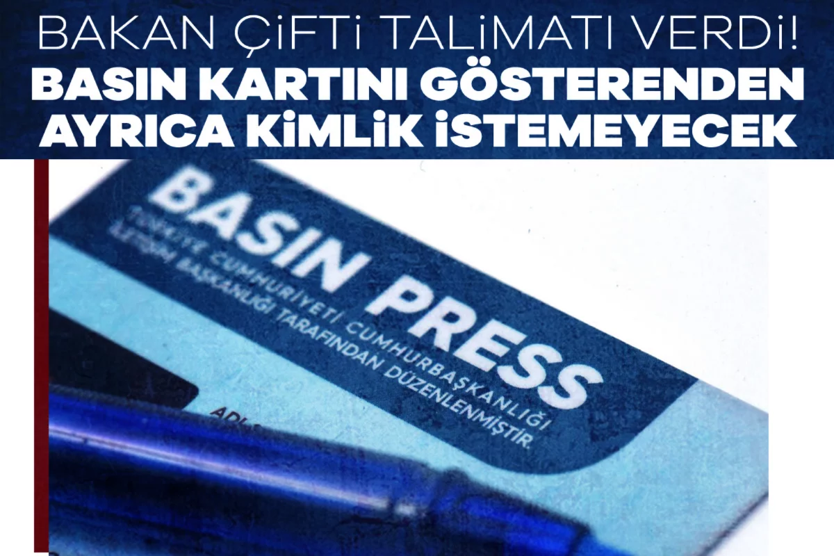 Söz konusu kanun ve yönetmelik hükümlerine göre "resmi kimlik belgesi" statüsüne sahip basın kartlarının kimlik tespiti süreçlerinde kullanıldığına işaret edilen yazıda Bakan Çiftçi, "Bu kapsamda usulüne uygun olarak düzenlenmiş basın kartını ibraz eden kişilerden kolluk birimlerince ayrıca bir kimlik belgesi ibraz etmelerinin istenmemesi" talimatı verdi.