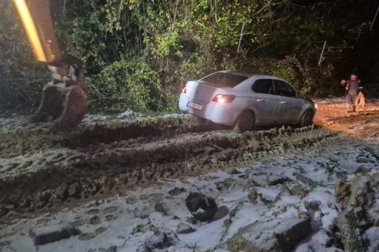 Yaklaşık 2 ay önce Bartın'a gelen A.A. ve eşi, kiralık ev ararkan navigasyonun yanlış yönlendirmesi sonucu ormanlık alana giden patika yola girdi. A.A.'nın yardım istemesi sonucu bölgeye polis, AFAD ve belediye karla mücadele ekipleri yönlendirildi. Kara ve çamura saplanan araç ve çift için zorlu bir kurtarma çalışması başlatıldı. İş makinesine bağlanan otomobil iş makinesi ile yüzlerce metre çekildi. Kar ve çamur nedeniyle zorlanan ekipler, yaklaşık 2 saat mahsur kalan çifti ve aracını kurtarmayı başardı.