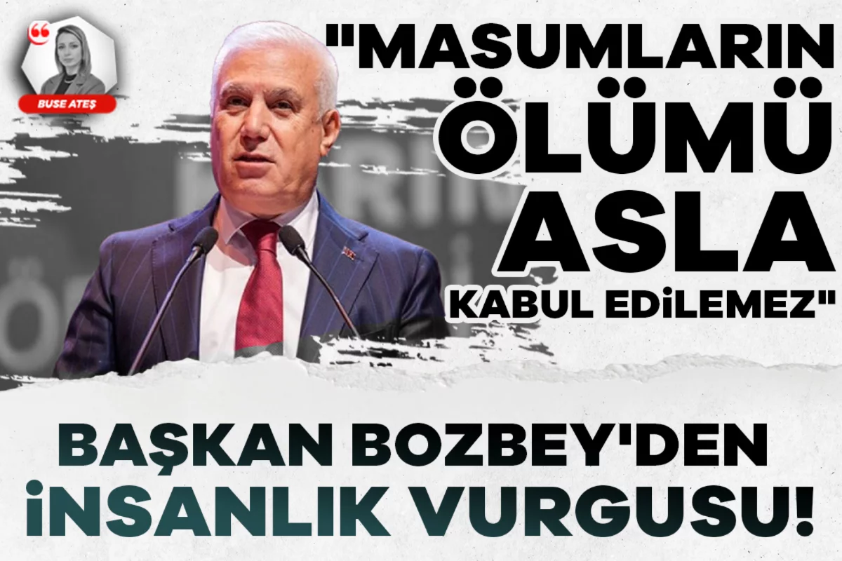Savaşlarda hayatını kaybeden çocuklara dikkat çeken Bozbey, "Bir çocuğun dahi savaşta aramızdan ayrılması kabul edilemez. O çocuğun bir yaşamı, bir geleceği var. Belki ileride insanlığın huzur içinde yaşamasını sağlayacak bir projeye imza atacaktı. Bunun ne günahı var?" ifadelerini kullandı.