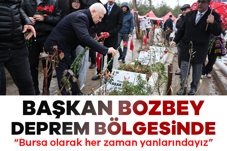Bursa Büyükşehir Belediye Başkanı Mustafa Bozbey, 6 Şubat depremlerinin yıl dönümü dolayısıyla CHP Genel Başkanı Özgür Özel ile birlikte deprem bölgesini ziyaret ettiklerini belirtti. Acıların taze, kaybedilen canların hatırasının ise kalplerde olduğunu söyleyen Başkan Mustafa Bozbey, "Genel Başkanımız Özgür Özel ile birlikte ilk olarak Kapıçam Deprem Şehitliği'ni ziyaret ederek dualarımızla yitirdiklerimizi andık. Kaybettiğimiz tüm vatandaşlarımıza Allah'tan rahmet, ailelerine sabır diliyorum. Rabbim milletimize bir daha böyle büyük acılar yaşatmasın" dedi.