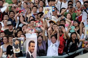 Geride kalan sezon sonunda emeklilik kararı alan İngiliz futbolcu David Beckham'ı görmek için Çin'in Şangay kentindeki bir üniversitenin stadyum kapısında toplanan 5 kişi çıkan izdihamda yaralandı.