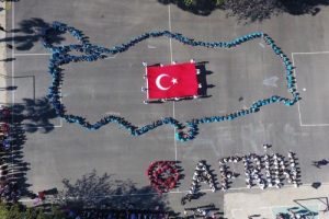 Antalya'nın Serik ilçesinde, öğrenciler, Türk Silahlı Kuvvetleri'nce (TSK) Afrin'deki terör örgütlerine yönelik sürdürülen 'Zeytin Dalı Harekatı'na destek için bedenleriyle Türkiye haritası oluşturup, 'Afrin' yazdı.