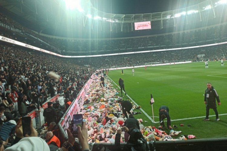 Bu akşam Beşiktaş - Antalyaspor süper lig maçında dakikalar ilk depremin yaşandığı saat olan 4.17 'yi gösterdiğinde binlerce Beşiktaş taraftarı yanlarında getirdiği oyuncakları depremzede çocuklara göndermek için sahaya attı.