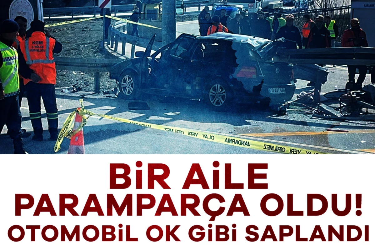 Karaman'da kontrolden çıkan otomobil bariyerlere ok gibi saplandı. Feci kazada anne ve baba olay yerinde hayatını kaybederken, 3 yaşındaki kızları yaralandı.
