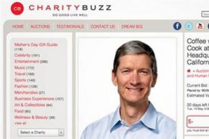 Hayırseverlik çalışmaları için ünlü isimlerinden de yer aldığı kampanyalar düzenleyen New York merkezli CharityBuzz şirketi Apple CEO'su Tim Cook ile kahve içmek isteyenler için bir açık artırma başlattı.