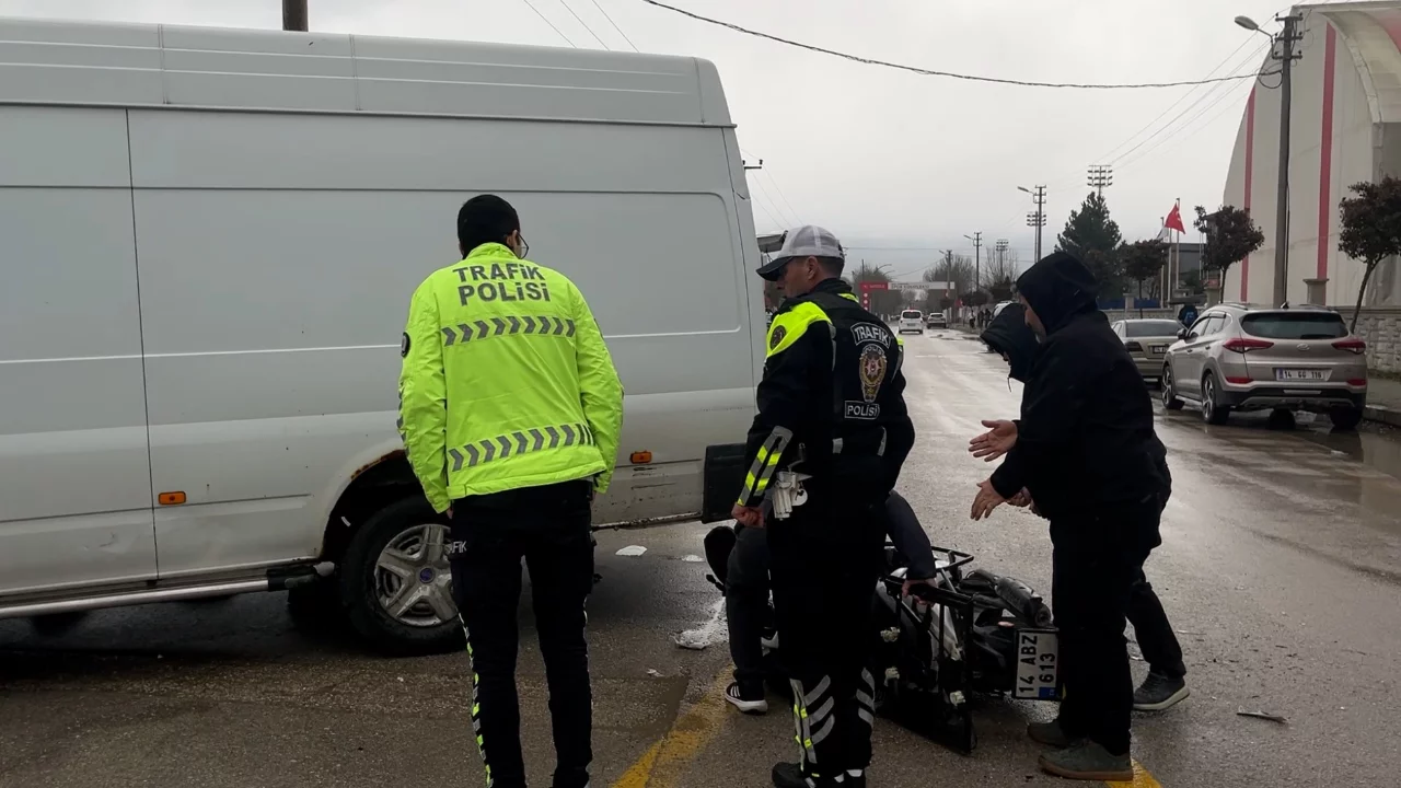 Edinilen bilgiye göre kaza, Karaçayır Mahallesi Murat Canbaş Caddesi üzerinde meydana geldi. A.Ç. idaresindeki 14 ABZ 613 plakalı motosiklet, Şehit Güven Keskin Sokak'a dönüş yapmak isteyen 14 BP 203 plakalı minibüsle dönel kavşakta çarpıştı. Çarpışmanın etkisiyle motosiklet sürücüsü A.Ç. yaralandı. Çevredeki vatandaşların ihbarı üzerine olay yerine sağlık ve polis ekipleri sevk edildi. Yaralı sürücü, ilk müdahalesinin ardından Köroğlu Devlet Hastanesine kaldırılarak tedavi altına alındı.