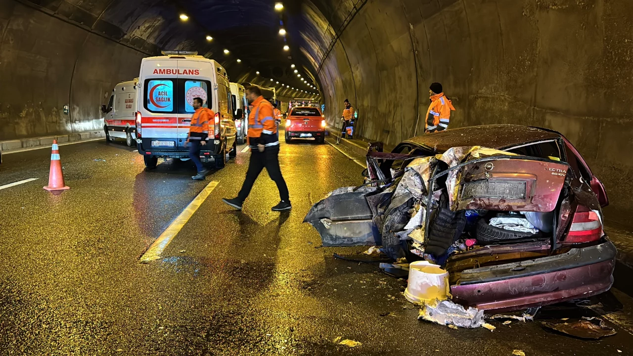 Bolu Dağı Tüneli içerisinde tırla çarpışması neticesinde hurdaya dönen otomobilde bulunan 5 kişi yaralandı.
