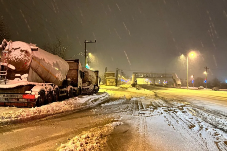 Bolu Dağı'nda etkili olan yoğun kar yağışı ve buzlanma nedeniyle D-100 kara yolunda ağır tonajlı araçların geçişi kısa süreliğine durduruldu. Kar kalınlığının 40 santimetreyi geçtiği bölgede, kayganlaşan yolda bir tırın şarampole kayması sonucu ekipler acil müdahale gerçekleştirdi. Karayolları ekiplerinin kar küreme ve tuzlama çalışmaları sonrası ağır tonajlı araçların geçişine tekrar izin verildi.