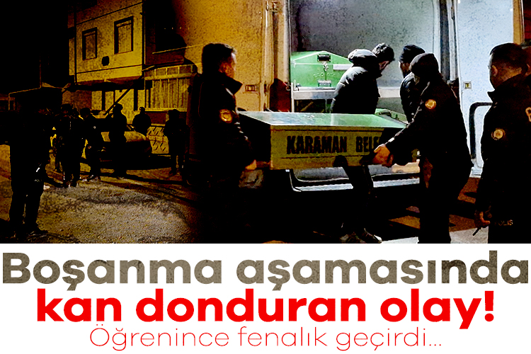 Edinilen bilgiye göre, Fatma Çetinkaya'dan (22) öğle saatlerinden itibaren haber alamayan ailesi, polis merkezine giderek kayıp başvurusunda bulundu. İhbar üzerine çalışma başlatan polis ekipleri, kadının boşanma aşamasındaki eşi Mithat Çetinkaya'nın (24) evine gitti. İtfaiye yardımıyla eve giren ekipler, 2 kişinin cansız bedeniyle karşılaştı. Yapılan inceleme sonucunda, Mithat Çetinkaya'nın karısını boğarak öldürdükten sonra kendisini asarak intihar ettiği belirlendi. Olayı duyarak gelen Fatma Çetinkaya'nın annesi kızının öldüğünü öğrenince fenalık geçirdi. Bunun üzerine adrese sağlık ekipleri sevk edildi. Adreste gelen çok sayıda polis ekibi de olayın yaşandığı sokakta güvenlik önlemi aldı. Cumhuriyet Savcısı ve olay yeri inceleme ekibinin yaptığı incelemenin ardından hayatını kaybeden karı kocanın cenazesi otopsi yapılmak üzere Karaman Eğitim ve Araştırma Hastanesi Morgu'na kaldırıldı.