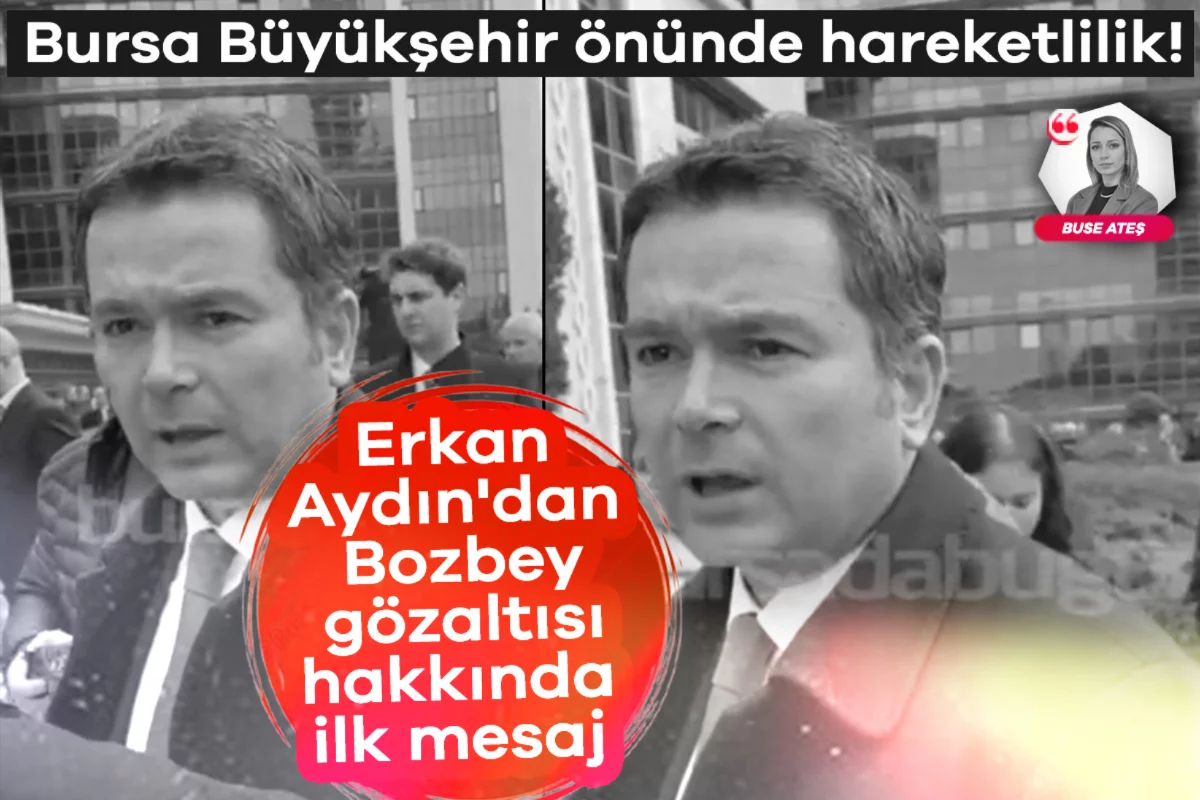 Bursa Büyükşehir Belediye Başkanı Mustafa Bozbey'in gözaltına alınmasının ardından CHP teşkilatı, Bursa Büyükşehir Belediyesi binasında bir araya geldi. Alana gelen Osmangazi Belediye Başkanı Erkan Aydın ise şu an için açıklama yapmayacağını, daha sonra kamuoyuna değerlendirmede bulunacağını söyledi.