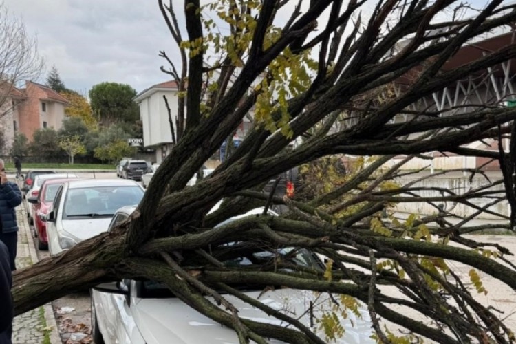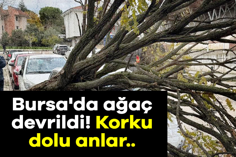 Bursa'da araçların üzerine devrilen ağaç korku dolu anlar yaşatırken, sadece maddi hasarın meydana gelmesi sevindirdi.