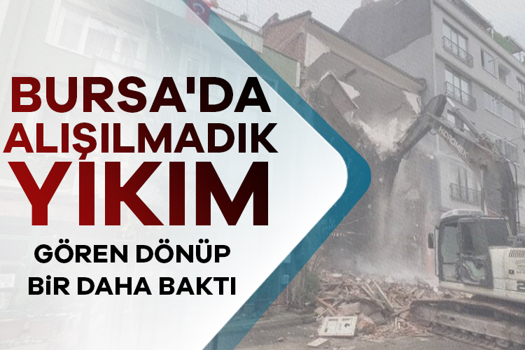 İlginç yıkım, Bursa'nın Osmangazi ilçesi Sakarya Mahallesi 10. Yavuz sokakta gerçekleşti. Eski binanın yıkılarak yerine yeni bina yapımı için hareke geçen yüklenici firma, iş makineleriyle sokağa geldi. Binanın yıkımı için harekete geçen iş makinesi, çatı kısmından aşağı doğru binayı yıkacağına zeminden işe başladı.