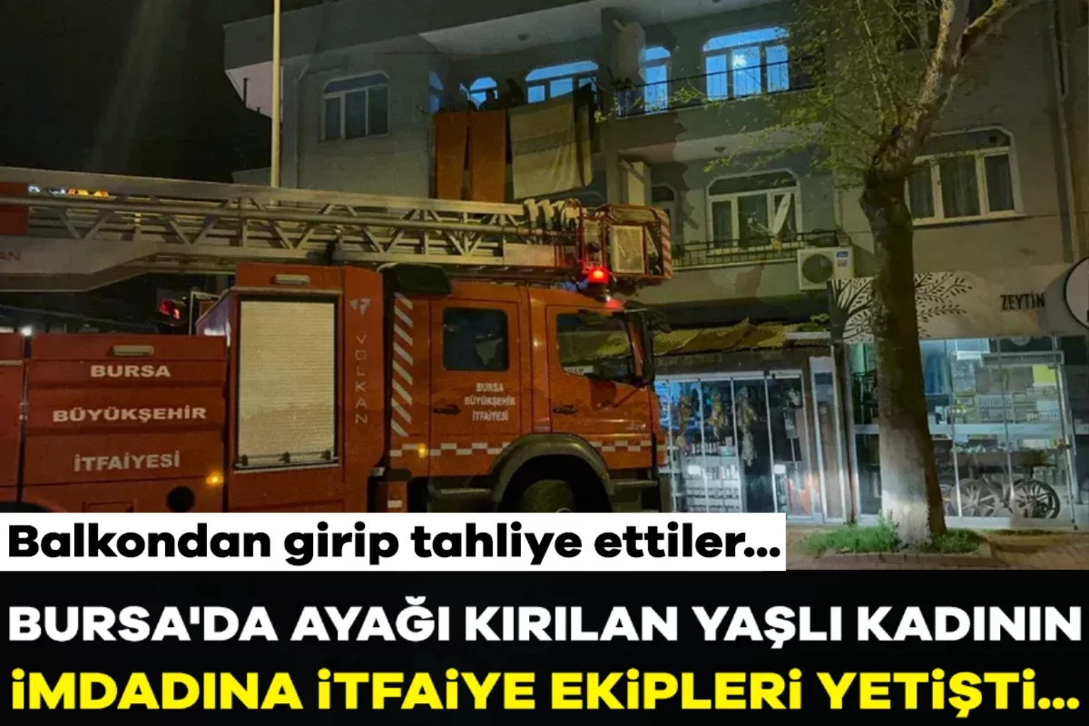 Bursa'nın İznik ilçesinde yalnız yaşadığı evinde düşüp bacağını kırarak mahsur kalan M.U. (72) isimli kadın, sepetli merdivenle balkondan eve giren itfaiye ekipleri tarafından kurtarıldı.