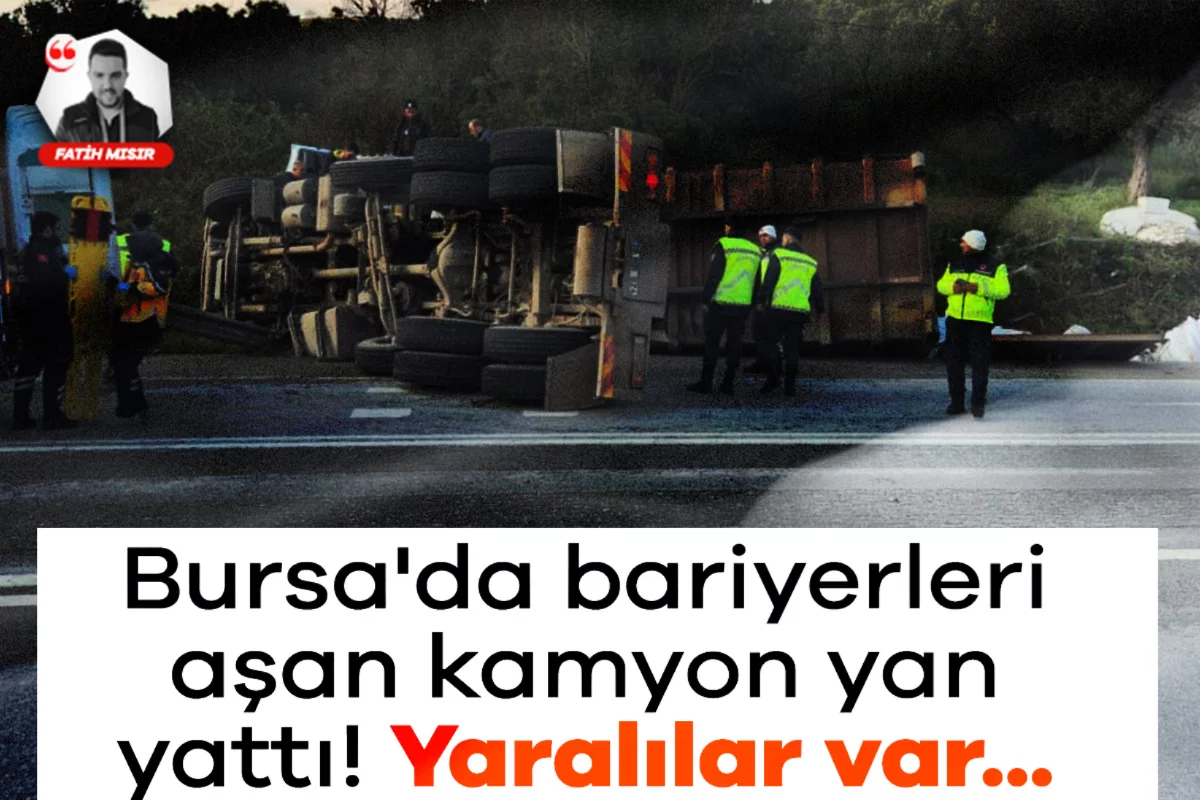 Bursa'nın İznik ilçesinde kontrolden çıkan cam elyaf yüklü bir kamyon, bariyerleri aşarak yan yattı. Kazada araç içerisinde bulunan 3 kişi yaralandı.